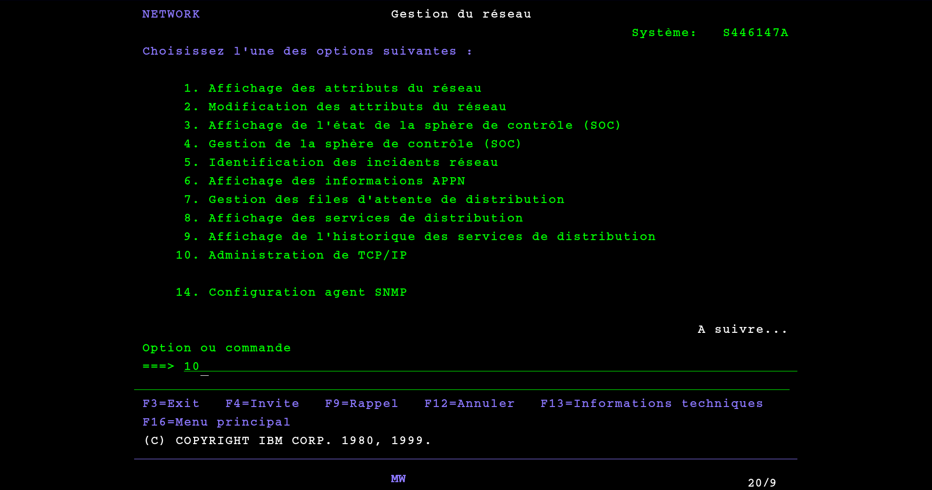 Puis dans le sous menu 10. Administration de TCP/IP choisissez 1. Configure TCP/IP :