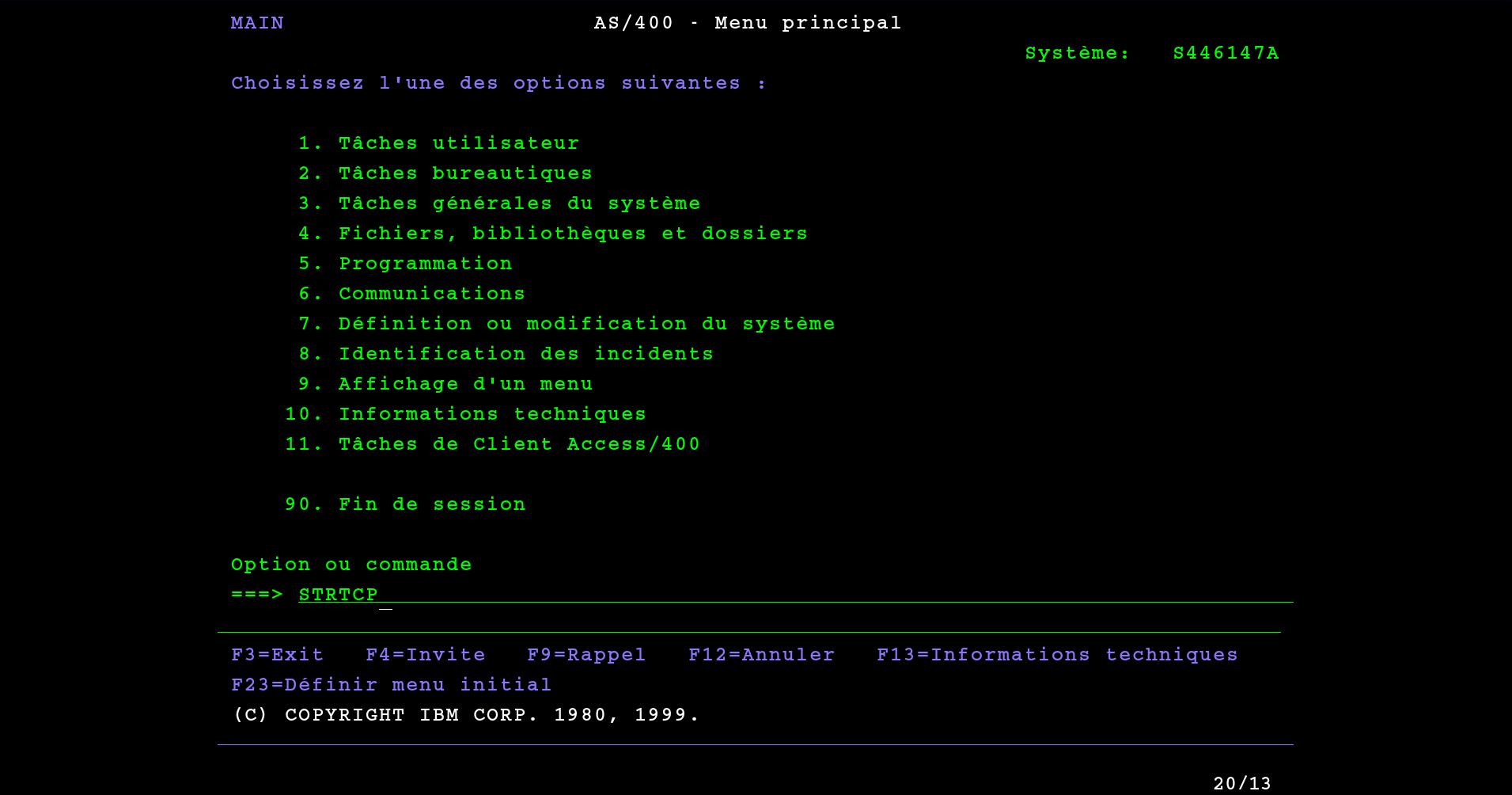 Pour démarrer le service TCP/IP depuis la console, il suffit de taper la commande STRTCP comme ceci :