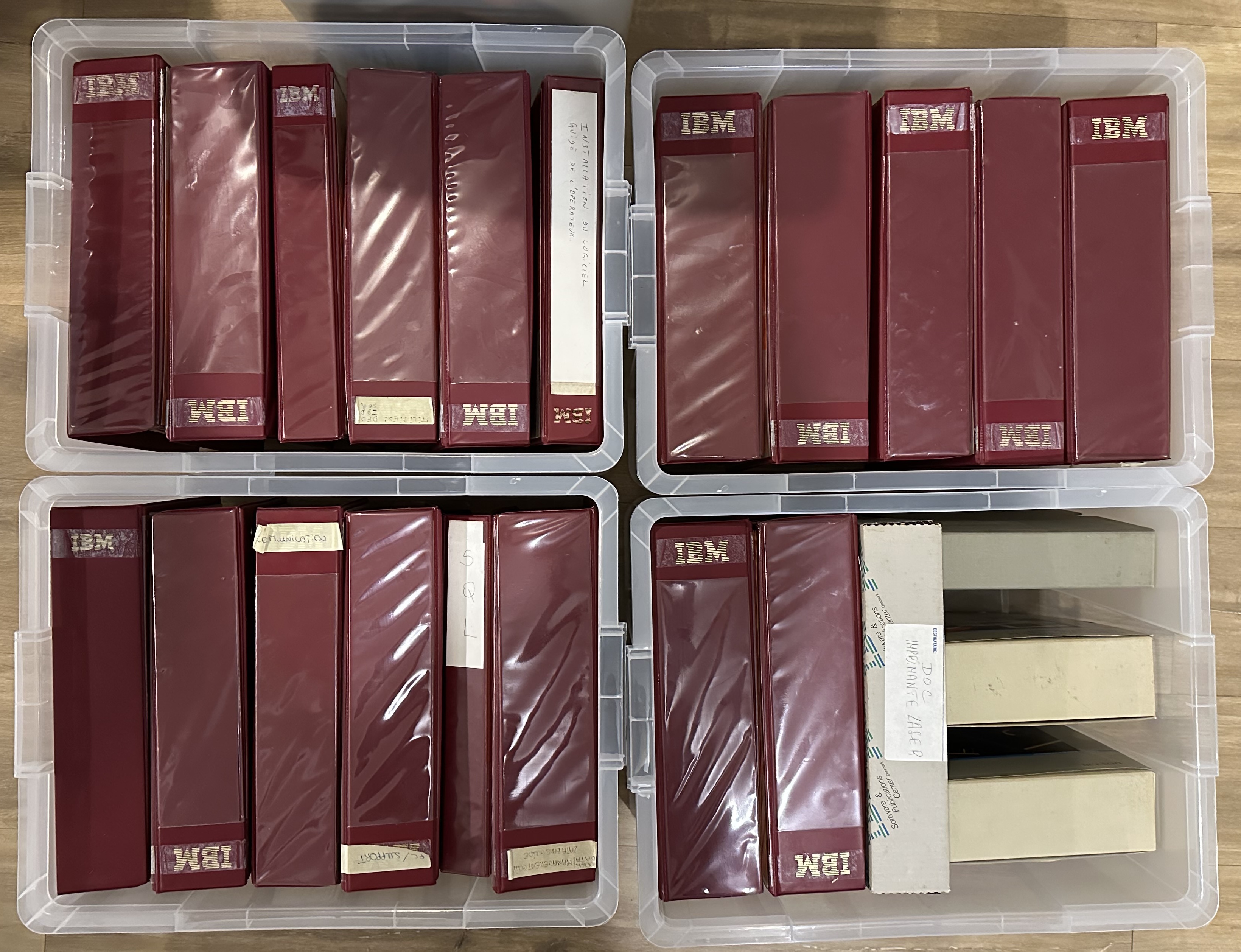 - Plusieurs dizaines de classeurs de documentation IBM : les manuels originaux livrés avec la machine.