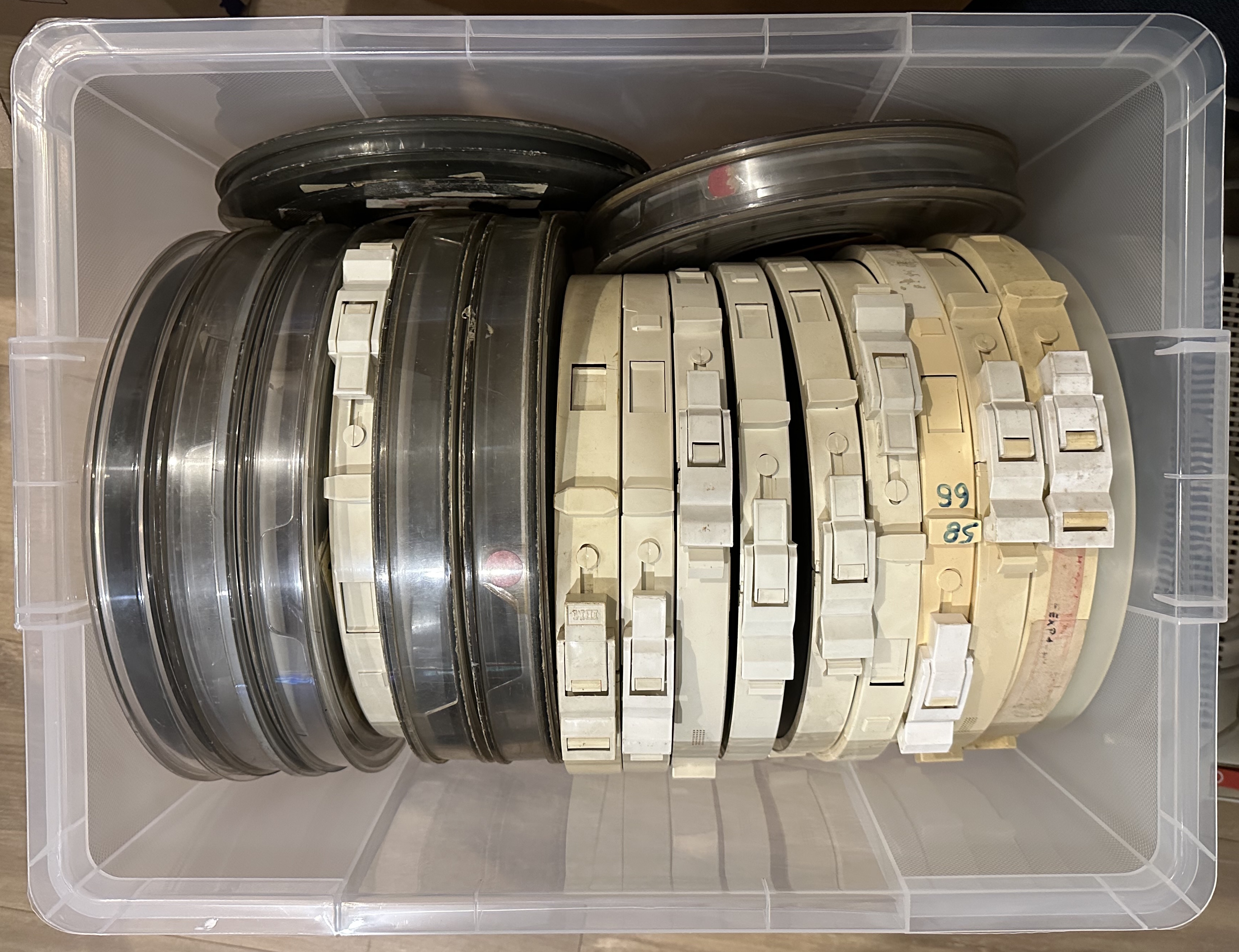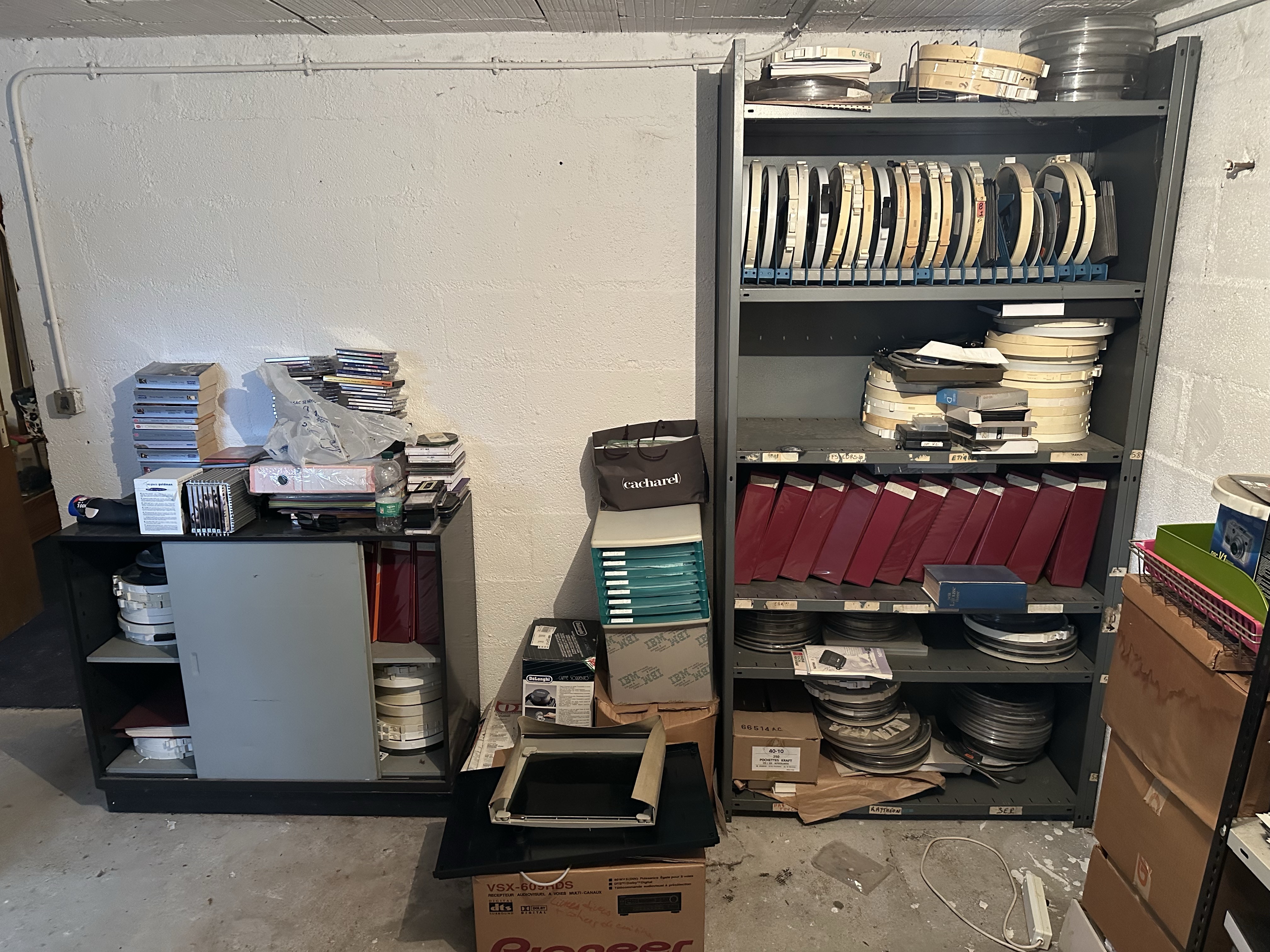 Il était vraiment temps de trier, nettoyer et mieux ranger tout ça. J’ai donc acheté pas mal de caisses pour stocker tout cela, et j’ai nettoyé chaque bande et chaque classeur un par un avant de les ranger. Je n’ai pas nettoyé la bande magnétique à l’intérieur des bobines pour l’instant, nous verrons cela plus tard.