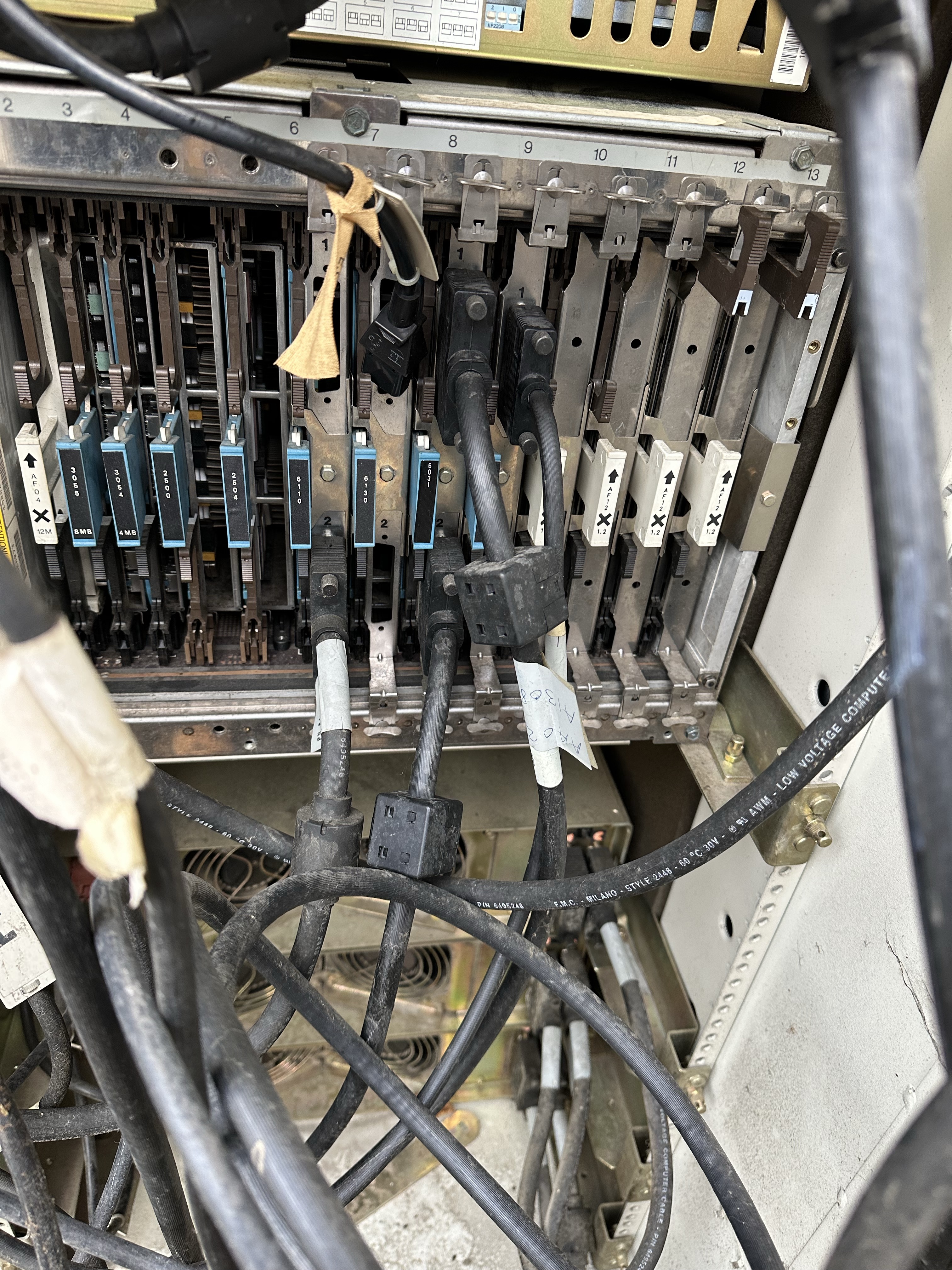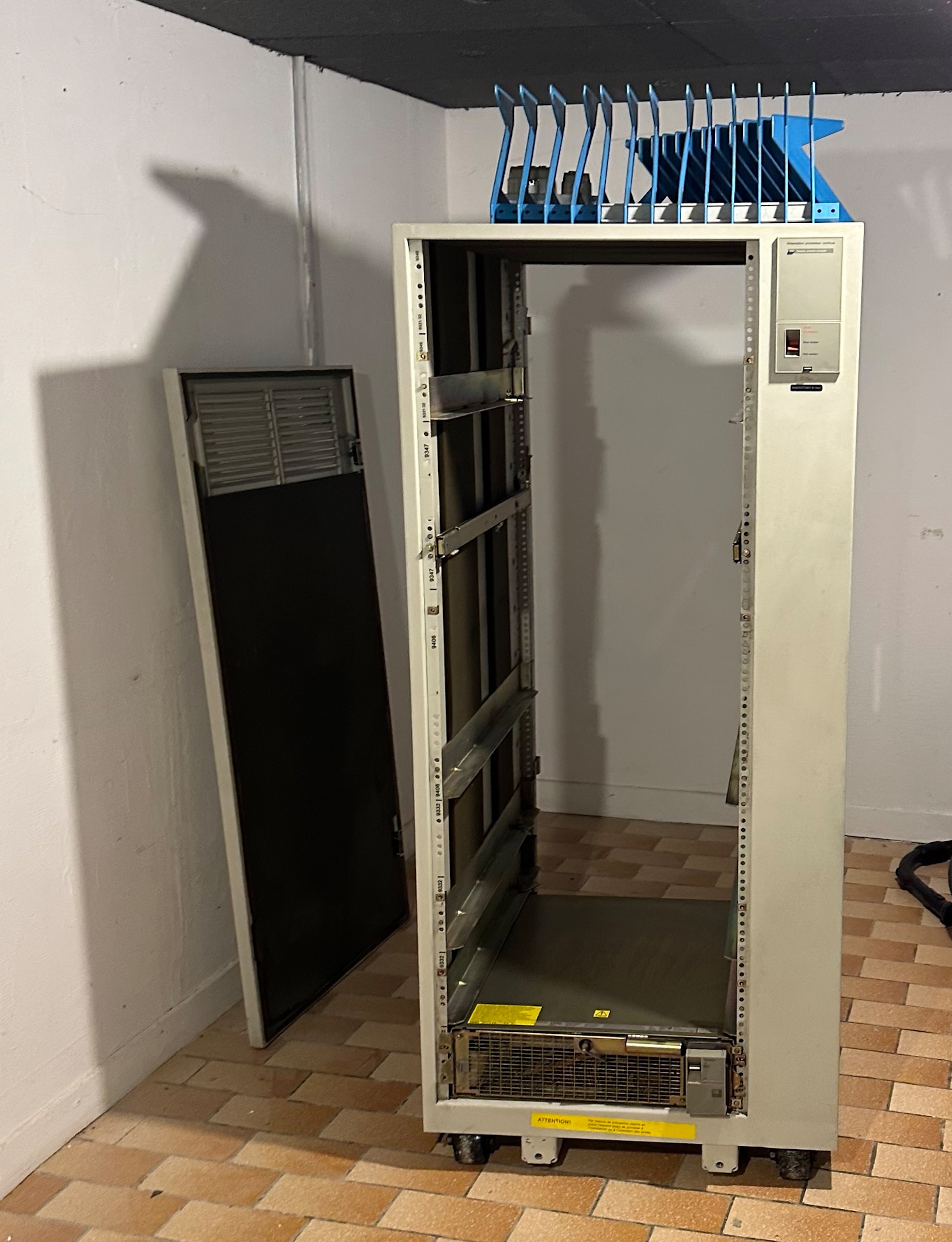 Nous n’avons eu d’autre choix que de démonter partiellement le rack pour réduire son poids. Avant de retirer quoi que ce soit, nous avons pris le temps de photographier soigneusement chaque connexion de câble et de noter la position de chaque composant. Ces machines ne sont pas le genre de matériel où l’on peut tout débrancher en espérant que ça ira. Chaque routage de câble et chaque emplacement de carte compte.