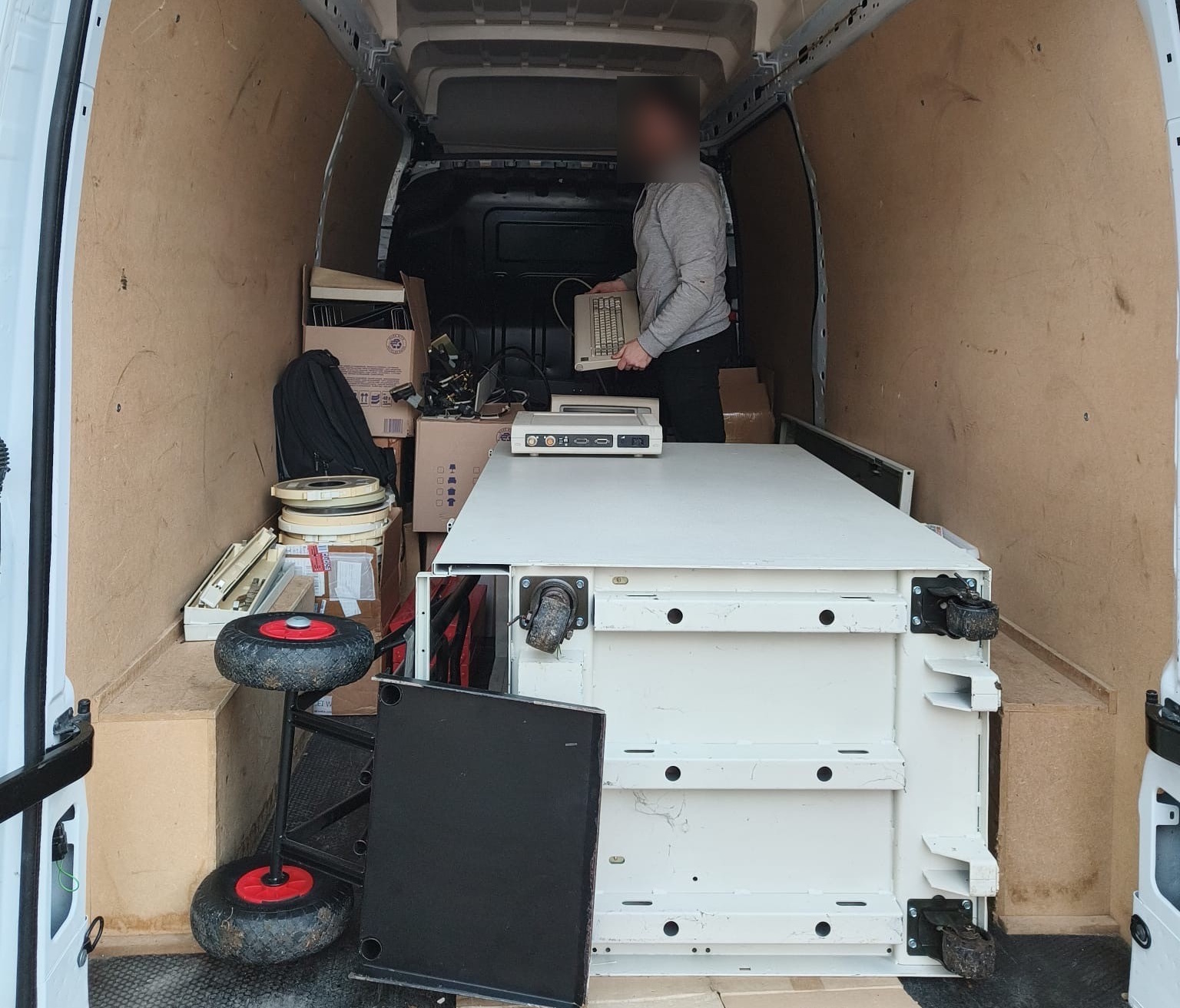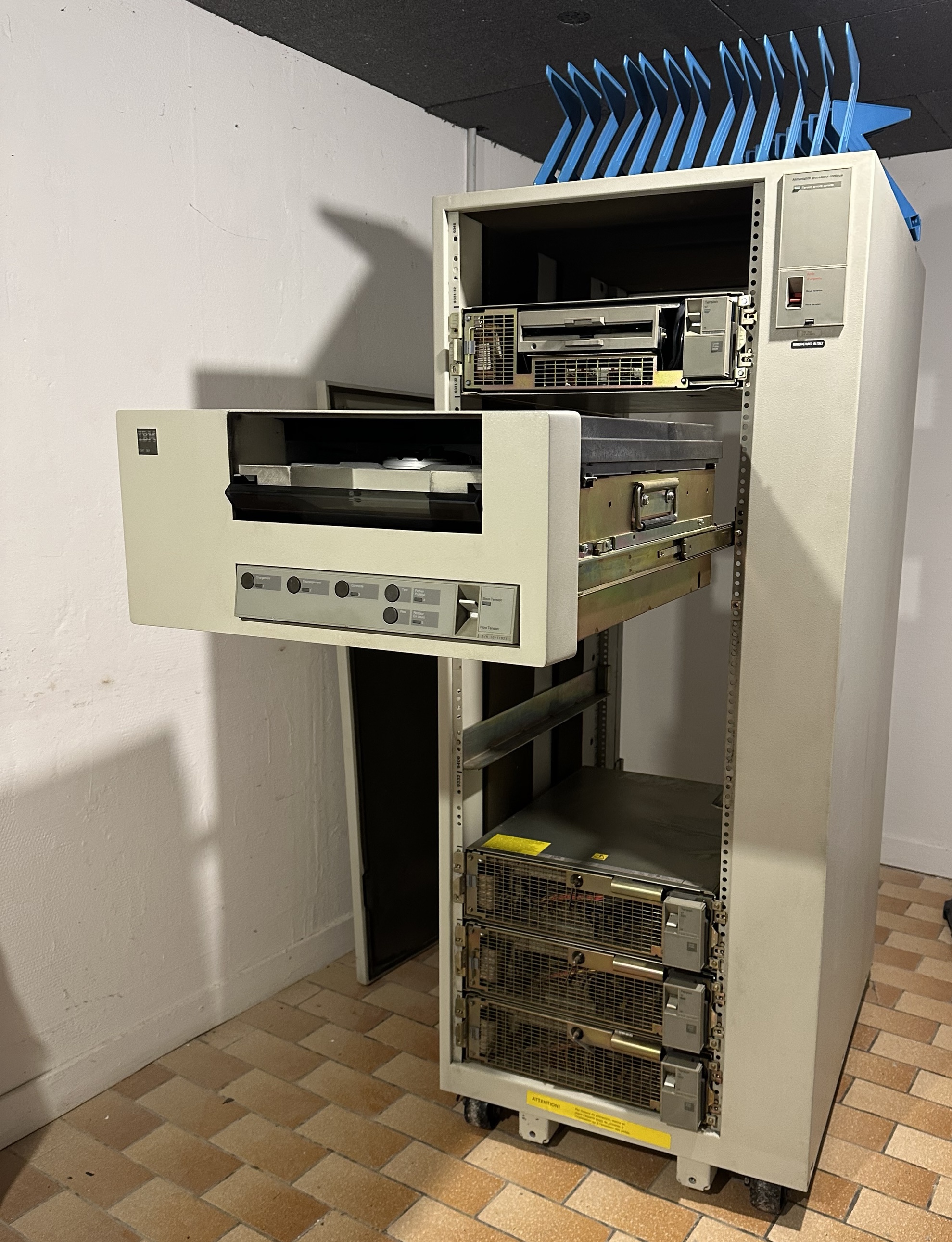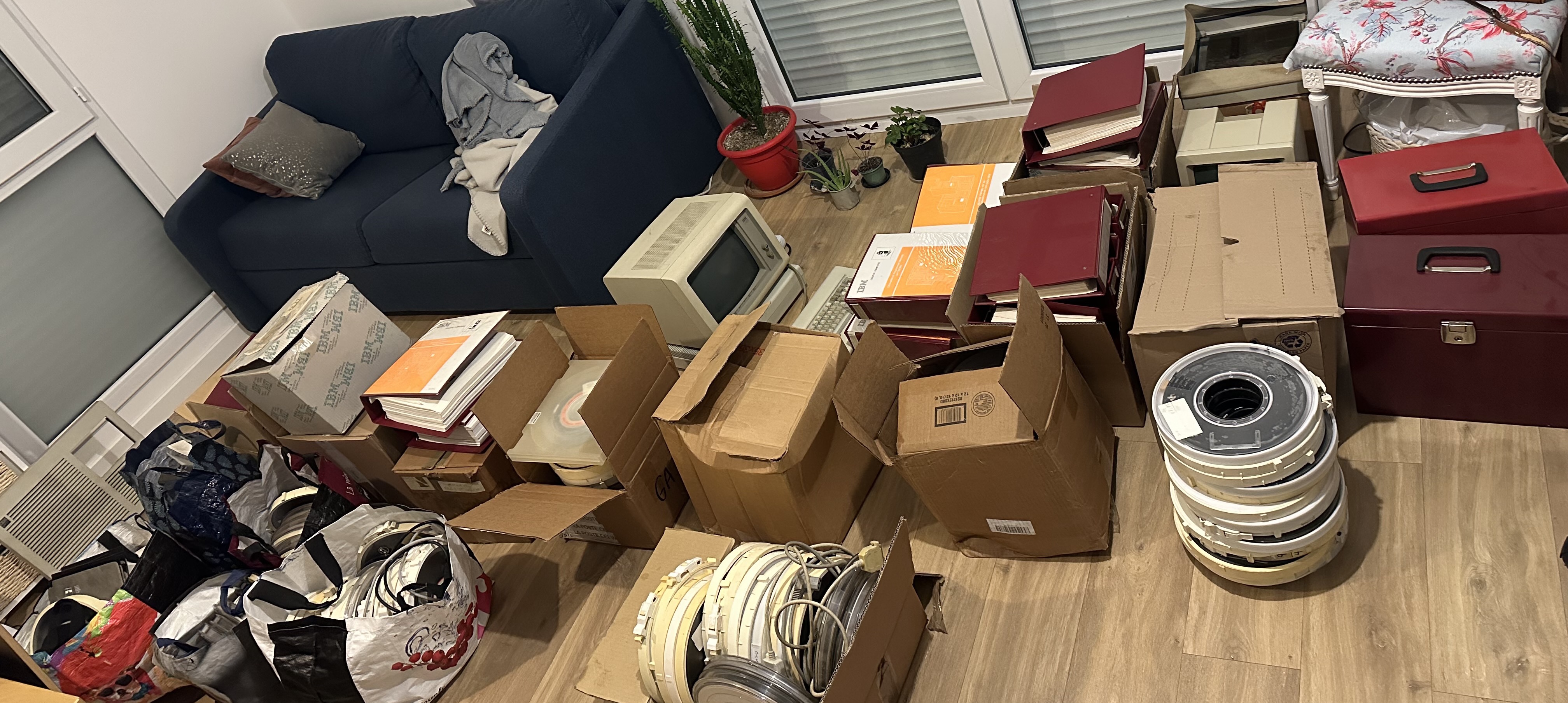 Nous sommes arrivés chez nous vers 21h, assez épuisés par ce périple. Ma compagne et moi avons déchargé la baie vide ensemble et l’avons installé dans le garage le soir même. Nous avons laissé tout le reste dans le camion : les bandes, les classeurs, le terminal, tous les composants en vrac.